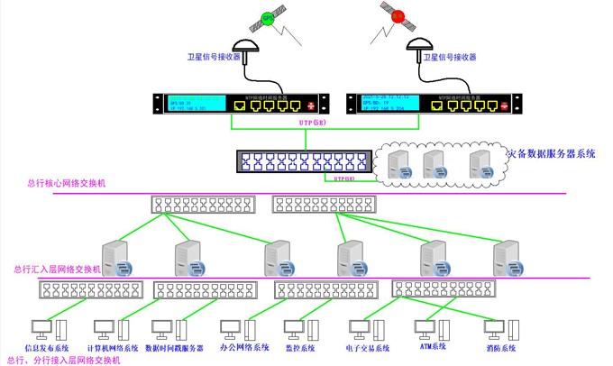 時間管理系統即通過***的、有效的、***的授時系統來為銀行、證券、保險等金融系統內成千上萬臺數據服務器、辦公電腦、電子交易、視頻監控、ATM自助去存取款機、門禁安保等網絡系統統一的、標準的、有效的、不可修改的時間戳信息,并形成交易大數據保存到數據機房信息災備中心備案待查;